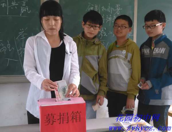 滴水当汇成仁爱的大海,星火将点亮生命的希望!5月15日,在团总支的倡议组织下,花园初中举行了为会宮中学患白血病的高三学生周慧敏同学献爱心捐款活动。全校学生积极参与,奉献爱心,尽自己的微薄之力为周慧敏同学延续生命之火。活动共募得善款两万多元。