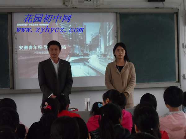 《安徽青年报·学生周刊》记者沈迪代表安徽青年报社对学生记者进行了培训。培训内容分为五个部分:导语、关于小记者、关于新闻、怎样写新闻、小记者风采。她对各位小记者提出殷切的希望和严格的要求,希望所有的小记者珍惜机会,多写、多看、多听、多思、多观察,做生活的有心人;要求小记者们在各方面都以身作则,影响和带动更多的同学,提高文学素养和新闻写作创作的水平,为进一步展示花园初中的教育教学成果和风貌多做贡献!
