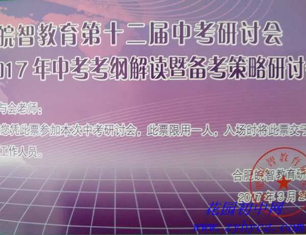 为更好地掌握中考前沿动态,明确2017中考命题方向,掌握中考复习策略,提高中考复习效率,3月26日,花园初中全体毕业班教师在合肥参加了皖智教育第十二届中考研讨会(2017年中考考纲解读暨备考策略研讨)。