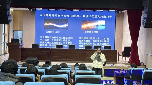 在“为何学习历史”的篇章里,彭丽老师将视野拓展至寰宇时空。她从138亿年前的宇宙大爆炸谈起,细数恐龙的兴衰更迭、人类从非洲南方古猿到智人的进化足迹;又将视野拉回人类文明,对比罗马帝国与大汉王朝的盛世荣光,结合《万物》一书的哲思,道出“生命独一无二,当珍惜当下、自信前行”的真谛。这番讲述,让学子们跳出课本的局限,深刻领悟到历史与生命、个体与文明的深层联结。