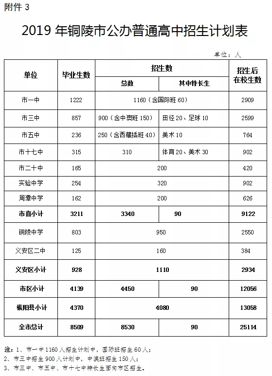 3.2019年铜陵市公办普通高中招生计划表