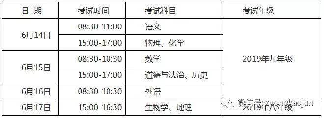 安徽省2019年初中学业统一考试科目具体时间安排如下!
