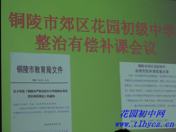会议强调,全体与会人员要提高站位,认真学习相关法律法规政策和《规定》,严格按照要求,贯彻落实好该文件精神和要求,对照《铜陵市郊区花园初中整治有偿补课实施方案》,规范教学行为,杜绝有偿家教和滥订教辅资料;倡导全体教师要静心教书,潜心育人,落实好立德树人根本任务。