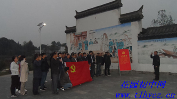 22日下午放学后,花园初中全体党员在王世和书记带领下参观了桐东抗日民主政府革命文物陈列馆。在馆外的宣誓墙前,党员们进行了庄严宣誓,重温入党誓词。