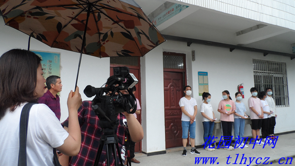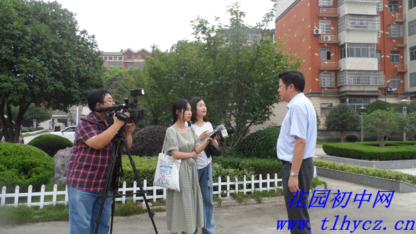7月10日下午,铜陵市广播电视台《铜陵新闻》、《早间新闻》栏目组记者全程拍摄报道了花园初中第二次预演活动,并现场采访了郊区教育局白兆丹副局长和考点主考王世和校长。