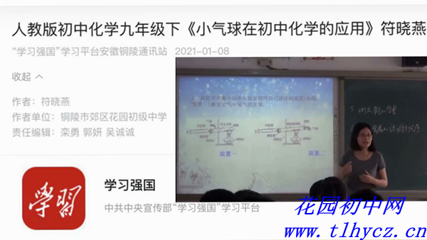 符小燕老师的化学课视频《小气球在初中化学的应用》(人教版初中化学九年级下)于1月8日登上“学习强国”学习平台。