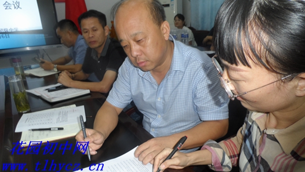 会议上,朱红春校长与各班主任签订了《花园初中安全目标责任书》。