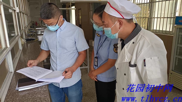 9月7日,郊区卫生监督所所长汤玲玲、副所长曾玲、严和强等,区市场监督局食品股股长丁超,陈瑶湖市场监督所所长胡雪利,深入花园初中现场督查校园疫情防控、餐饮食品安全,预防和控制学校安全事故的发生,切实保障师生的身体健康和生命安全。区教育局体卫艺科科长严黎君、谢桂参加督查,校长朱红春等校领导陪同。