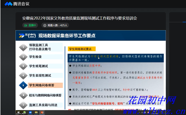 花园初中组织参加国家义务教育质量监测工作线上培训会