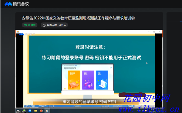 上午9时整,视频培训会正式开始,花园初中参与组织实施工作的相关人员认真观看,了解政策、熟悉规则、掌握方法、测试流程。