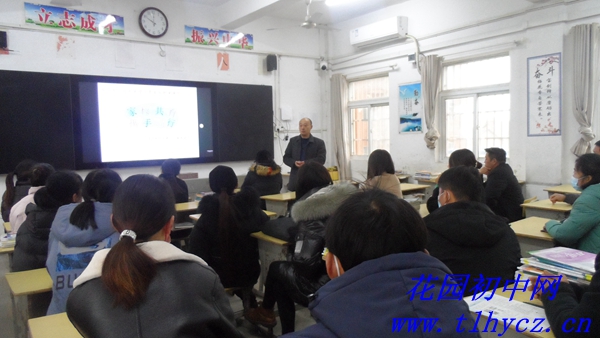 在家委会主任谢贵俊、家长代表左保平发言交流后,朱红春校长代表花园初中全体教职工感谢毕业班家长抽出时间参加会议,并送上新年祝福,祝元宵节快乐。