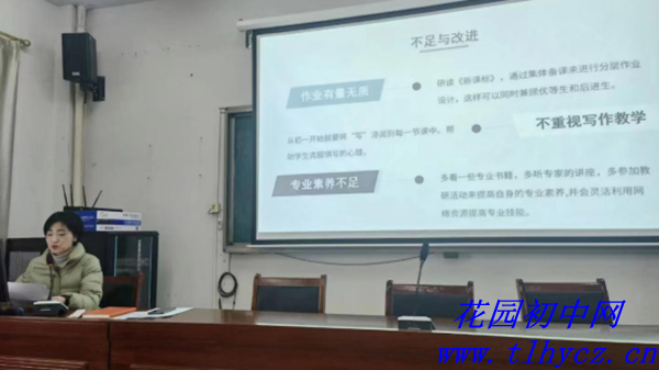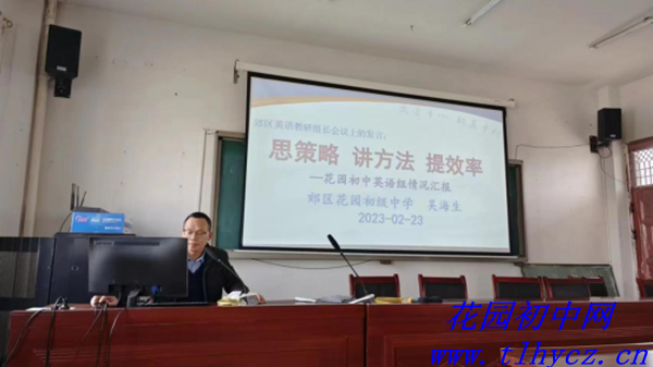 会上,花园初中英语教研组长吴海生老师、老洲初中英语教研组长方纪老师作了交流发言。