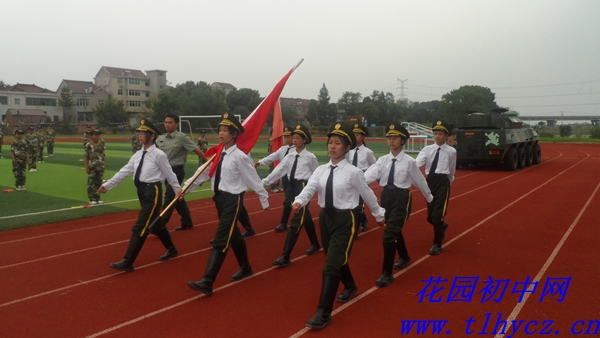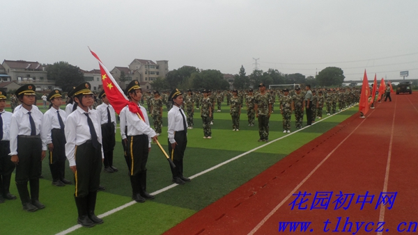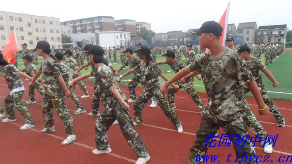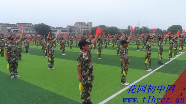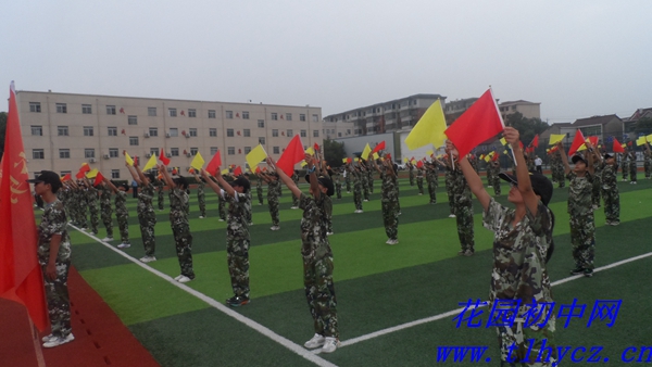 9月26日下午,郊区花园初中七年级新生国防教育结营仪式暨表彰大会在塑胶运动场隆重举行。七年级各班以连为单位在操场上列队集合,接受检阅。