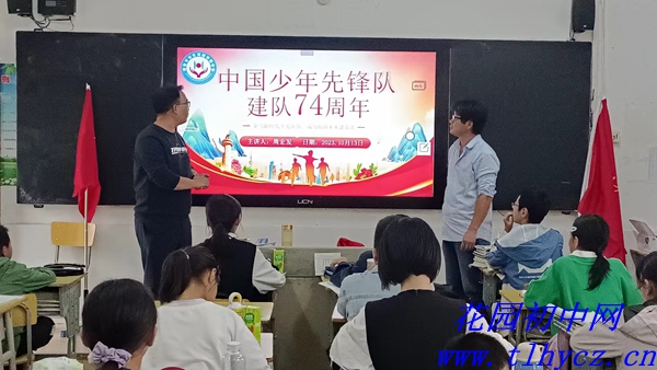活动举办前,花园初中利用周一晨会、国旗下演讲等向全体同学讲述少先队的队史和基本礼仪规范,通过显示屏、宣传栏、主题班会等,介绍少先队的基本知识。多种形式活动的宣传开展,在校内掀起了积极参加少先队建队日活动的热潮。(杨颉 陈腾飞)