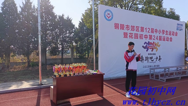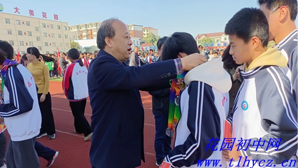 11月21日,郊区花园初中在学校绿茵场隆重集会举行颁奖典礼,为第24届运动会优秀运动员和班集体颁奖。