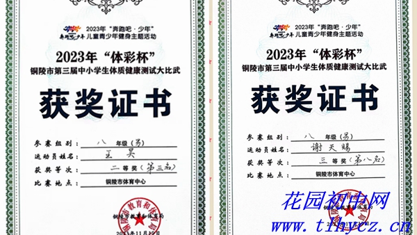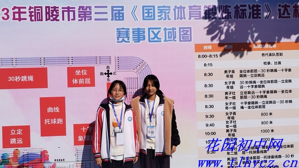 花园初中按照《2023 年铜陵市第三届中小学生体质健康测试大比武实施方案》积极筹备参赛,结合实际情况,参加了男子组项目(5项):50米跑、引体向上、立定跳远、坐位体前屈和1000米跑和女子组项目(5项):50米跑、一分钟仰卧起坐、立定跳远、坐位体前屈和800米跑的比赛。