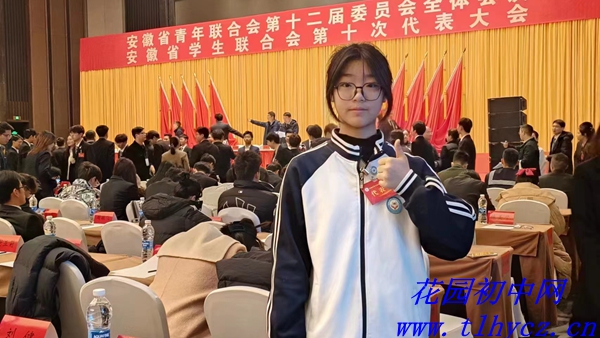 12月21日至22日,安徽省学生联合会第十次代表大会在合肥市召开。经郊区教育局严格推选,市区团委组织考察审核和省学联秘书处资格审查等程序,花园初中八年级(3)班周贤同学作为郊区唯一的学生代表,列席参加了安徽省学生联合会第十次代表大会。这是郊区的骄傲,更是花园初中的光荣。