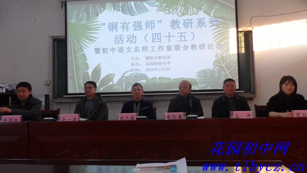 为打造“铜有强师”教育新名片,进一步发挥名师工作室示范引领作用,展示初中语文名师工作室的教学教研成果,1月4日,“铜有强师”教研系列活动(四十五)暨郊区瞿丽丽名师工作室和义安区王进名师工作室联合教研活动在花园初中举办。本次活动由铜陵市教科所主办。校长朱红春等校领导与各县(区)初中语文教研员、教研组长、名师工作室成员、部分骨干语文教师、花园初中语文组教师一起参加了活动。