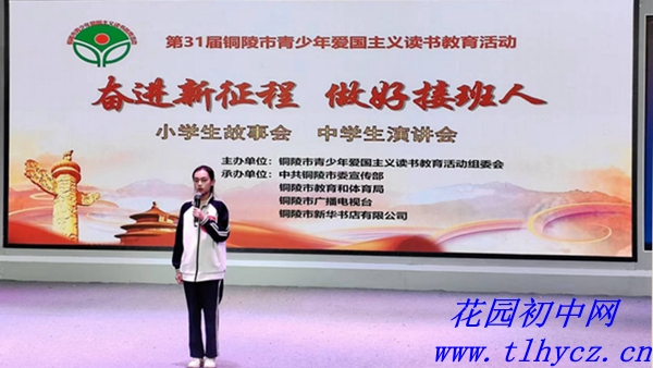 青春正好,不负韶华。6月19日,在铜陵市电视台举行的第31届铜陵市青少年爱国主义读书教育活动“奋进新征程,做好接班人”中学生演讲会比赛中,花园初中706班周子暄同学(指导教师周平)、805班周敏同学(指导教师张琴)代表郊区参加市决赛,经过激烈的角逐,均获得市三等奖优异成绩。