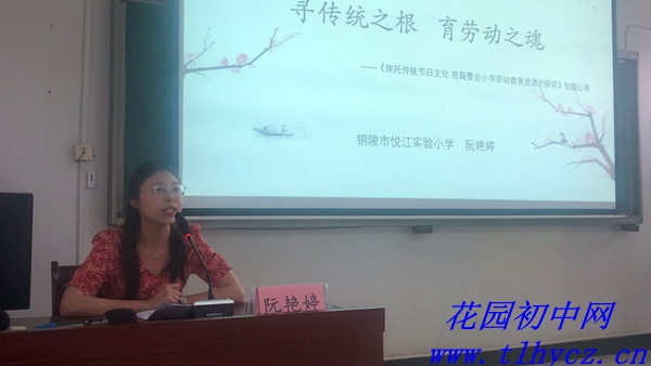 “寻传统之根,育劳动之魂。”经验交流环节,悦江实验小学的阮艳婷老师从课题研究内容的确定、课题研究方法的确定、课题研究的实施等三个方面分享了《依托传统节日文化挖掘整合小学劳动教育资源的研究》课题结题心得。