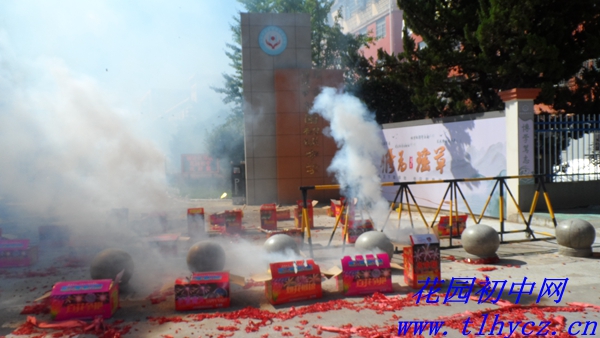 “希君生羽翼,一化北溟鱼。”花园初中莘莘学子取得2024年中考优异成绩,干群振奋,反响热烈。花园村、社会贤达名流、学生家长等自发在学校大门燃放烟花鞭炮,向花园初中表示热烈祝贺。46个礼花+1盘满地红,烟花的绚烂,鞭炮的鸣响,仿佛成了沸腾的世界。(章友斌)
