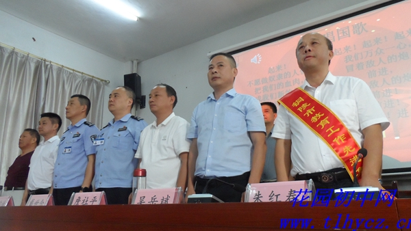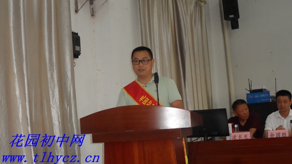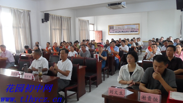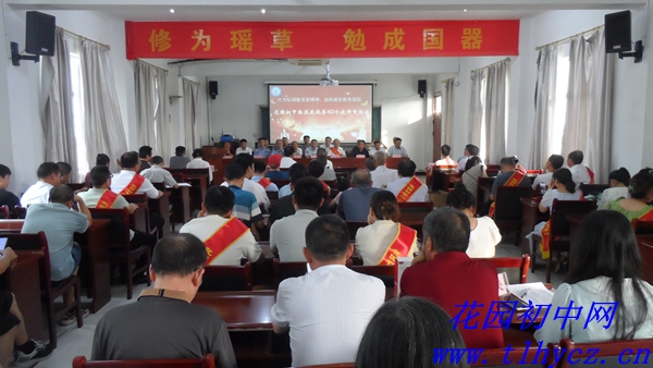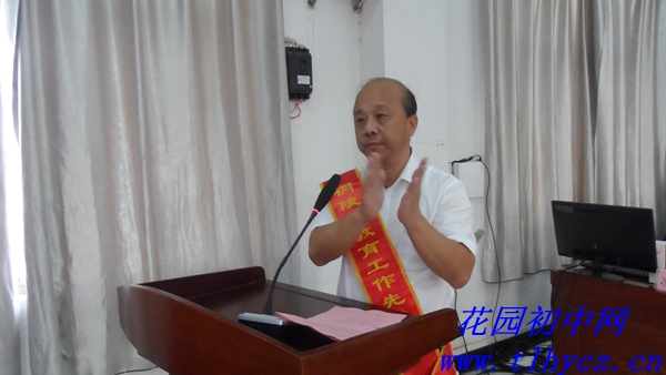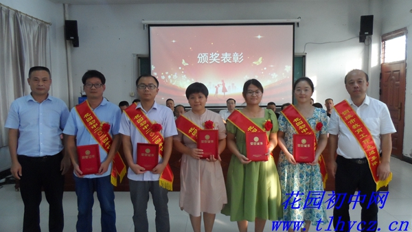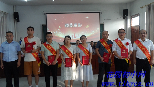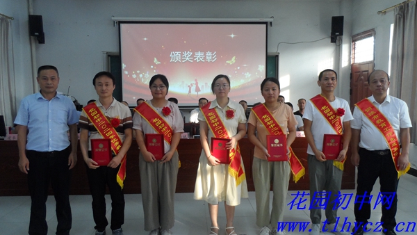 下午五时整,花园初中庆祝教师节暨表彰大会在嘹亮的国歌声中拉开帷幕。