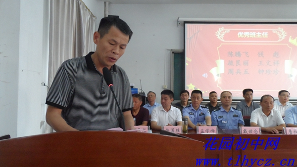 副校长谢贵恒宣读了2024年花园初中优秀班主任、优秀教师名单。