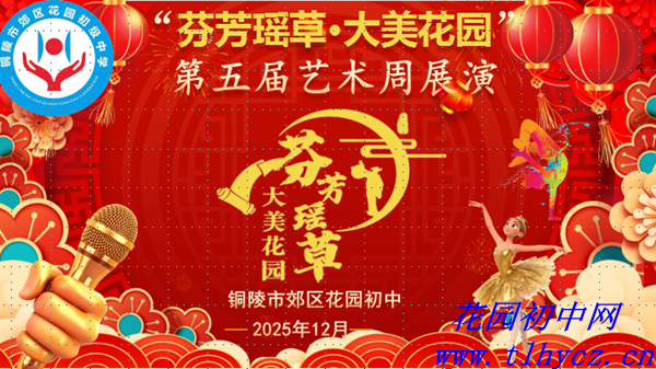 为营造文明高雅、奋发向上的校园文化氛围,丰富师生文化生活,促进学生艺术素养全面提升,12月5日,郊区花园初中在科教楼报告厅隆重举办校园第五届艺术周八年级专场展演活动。本次展演紧扣“成长+成绩”的育人理念,以多样的艺术形式展现八年级学子的青春风采,进一步巩固和拓展了铜陵市首批“五育并举示范校”的建设成果,让美育之花在校园绽放。