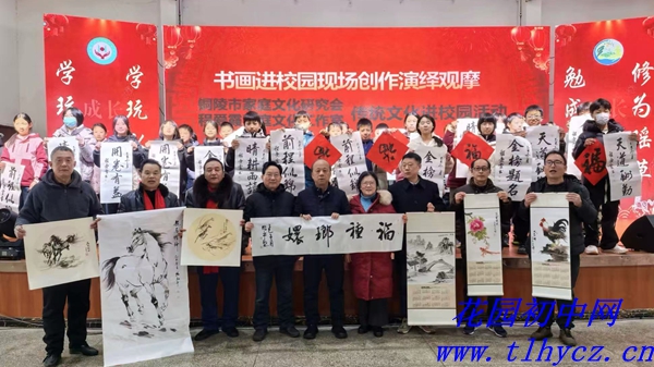 最后,受邀书画名家、学校领导及师生代表共同合影留念,为本次“书画进校园”现场演绎观摩活动圆满收官。