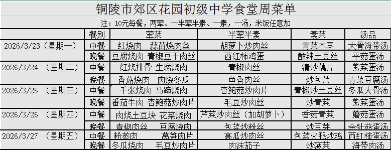 【家校共育│阳光食堂】郊区花园初中第四周菜谱上线!