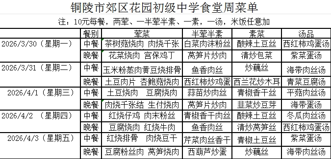 【家校共育│阳光食堂】郊区花园初中第五周菜谱上线!